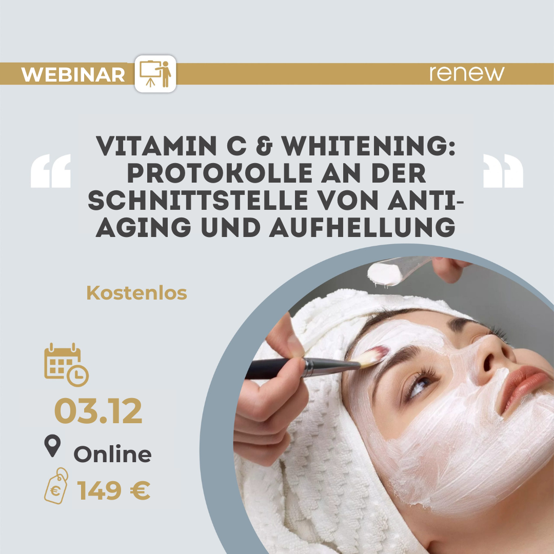 Dieses Webinar richtet sich an Kosmetiker:innen, die Vitamin C und Whitening nicht getrennt, sondern strategisch einsetzen möchten – sicher, wirksam und nachvollziehbar für die Kund:innen.