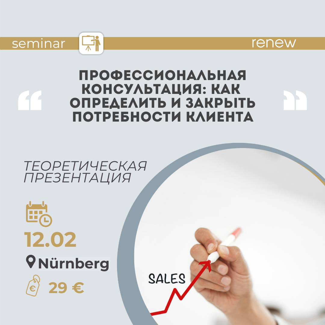 Теоретический семинар Приглашаем вас на практически ориентированную теоретическую презентацию, посвящённую работе с клиентами и профессиональным консультациям.Этот семинар проводит менеджер по