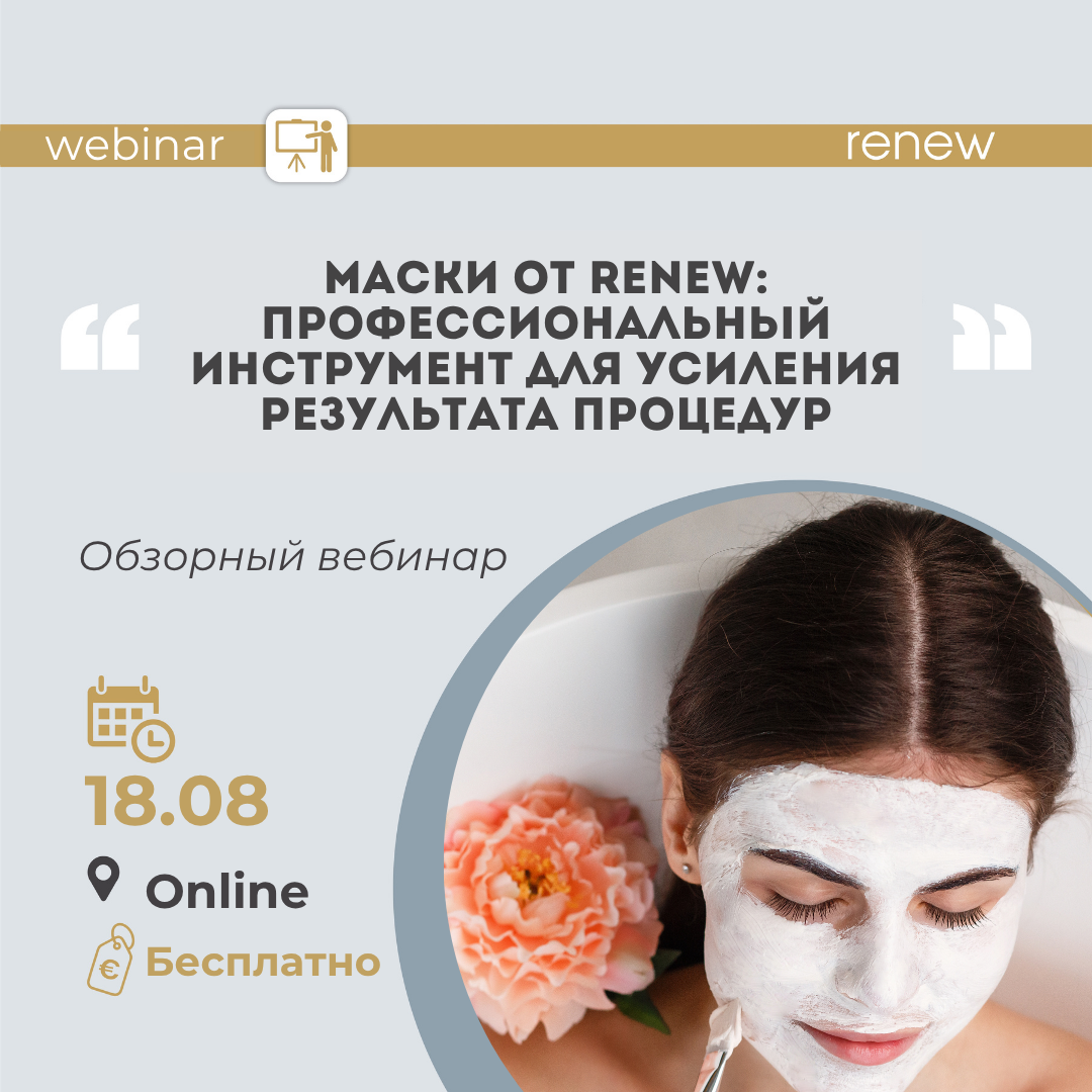 Вебинар “Маски от Renew: профессиональный инструмент для усиления результата процедур” Экспертный разбор линеек Renew и ТОПовых препаратов с Инарой Дадашевой
