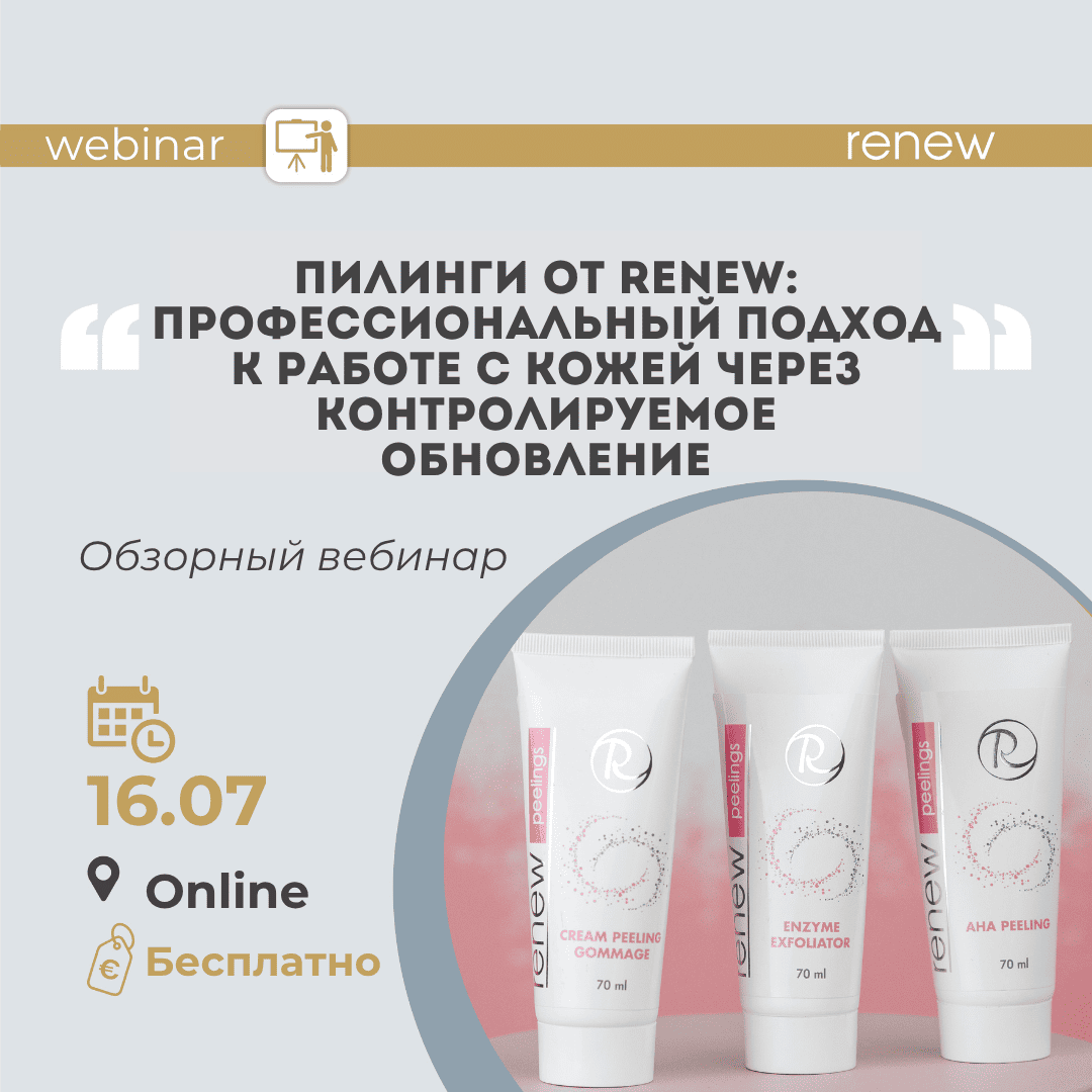 Вебинар “Пилинги от Renew: профессиональный подход к работе с кожей через контролируемое обновление” Экспертный разбор линеек Renew и ТОПовых препаратов