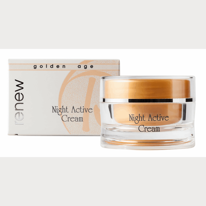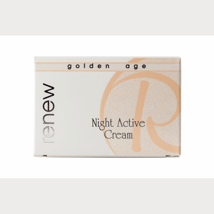 Die Night Active Cream von Renew ist eine hochwirksame Anti-Aging-Nachtcreme, die gezielt die nächtliche Zellerneuerung und Hautregeneration unterstützt. Mit einer ausgewogenen Kombination aus Sheabutter, Mandelöl, Kollagen, Vitamin A & E sowie Ginkgo-Biloba-Extrakt wirkt sie intensiv gegen Alterserscheinungen und versorgt die Haut mit wertvollen Nährstoffen.